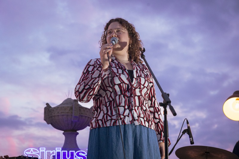 Billianne on the Rialto rooftop was my soft-open. No parkour to the stairs this time around; for some reason, a security guard gave me a stern talking-to the second I pulled myself up the railing, despite the same act meeting no resistance whatsoever the night prior. It was very public and mildly humiliating. My press badge felt like a scarlet letter; I had failed Paste Magazine. I represented us poorly to the world. To this day, my ego has yet to fully recover. I shuffled away with my tail between my legs and tried to find a place to sit on the floor that would make people stop looking at me with that pitying secondhand embarrassment in their eyes. Thankfully, Billianne’s voice was as good a distraction I could possibly hope for. This was my second time seeing her in the flesh—my first being when she performed at our Paste Party during South by Southwest this year—and the clarity of her tone blew me away anew. She’s got that big-pop-singer-in-the-making timbre that feels radio-ready without sanding off the grain. “Are you guys prepared for me doing this a lot?” she asked, before doing an adorable little shimmy with a sheepish laugh. A spite song aimed at an old label landed with a particular gleam at sunset; you could hear the vowels catch and hang in the air. I didn’t stay for her whole set—I had a schedule to maintain!—but even as I walked to the bus station, I could hear her voice still faintly echoing down Park Ave.