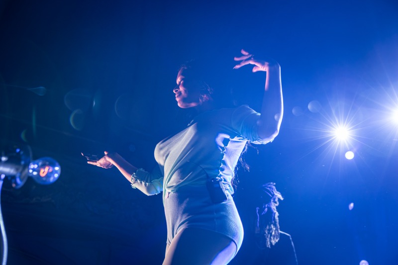 A bus dropped me off back at the Rialto once more, this time for Toronto art pop outfit U.S. Girls. I weaved through the crowd while Meg Remy (barefoot, somehow both ethereal and extremely practical) announced between songs, “I have very bad eyes. I have the highest level prescription. My eyes look good but they don’t see shit,” then tried to shout out a friend with even worse vision. A couple next to me started pointing and cheering—it was the woman standing right there—but Remy couldn’t actually spot her, which only improved the joke. When she picked up the setlist, it was inexplicably soaking wet (????) and therefore useless. “Okay, we’re doing requests,” she decided, conferring with the band until they collectively half-remembered one shouted title: “I think we know that one.” They did. “You guys, I’m gonna slip and fall so bad—get ready,” she warned, lifting her wet feet like a punchline. But at least while I was there, no accidents were had. Remy moved like water though, body lilting soulfully in tune with her always-clear voice.